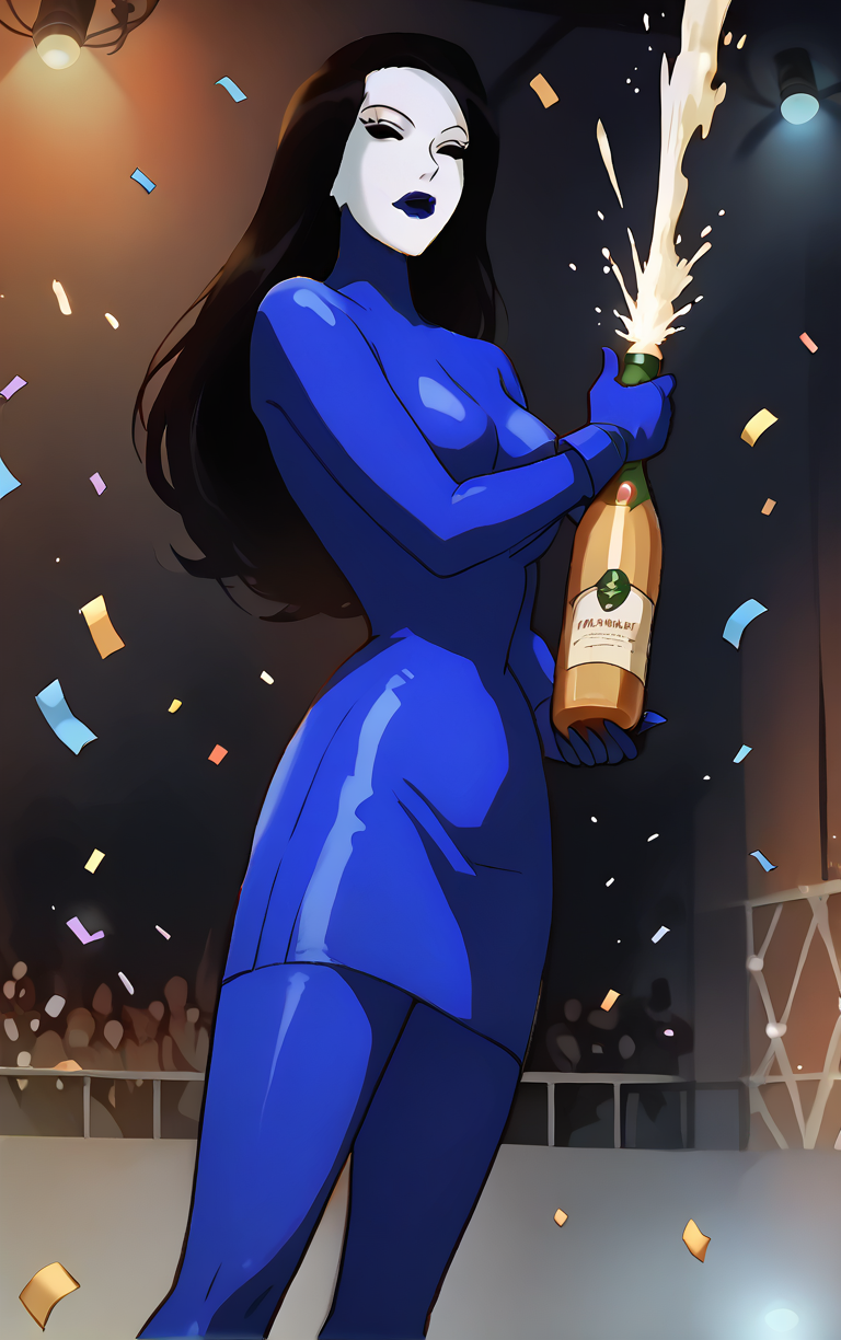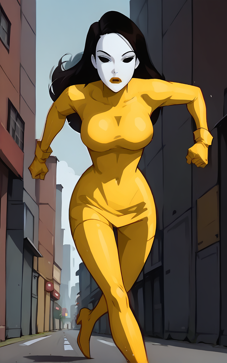 LoRA 학습 과정에서 저는 그녀가 에피소드에서 보여진 네 가지(녹색, 노랑, 주황, 검정) 색상이 아닌 거의 모든 색상의 바디수트를 입은 상태로 생성할 수 있도록 설정했습니다. 항상 "흰 마스크"를 프롬프트로 사용하지만, 바디수트, 장갑, 입술의 색상은 원하는 색으로 바꾸기만 하면 됩니다.