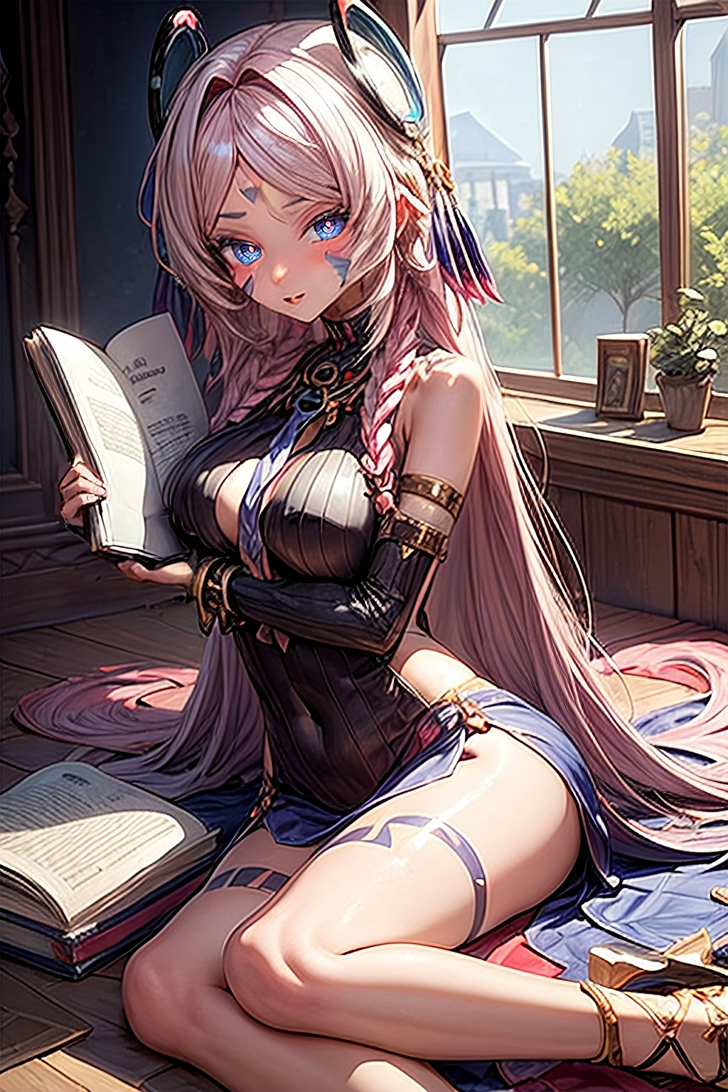 일부 애니메이션 모델은 추가 프롬프트 없이도 그녀의 눈을 정확히 표현하지만, 그렇지 않은 경우 ADetailer와 다음 프롬프트를 사용하여 inpaint를 실행할 수 있습니다: dark blue eyes