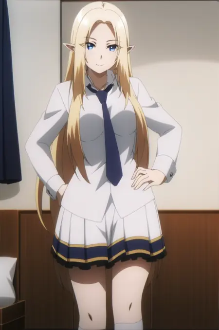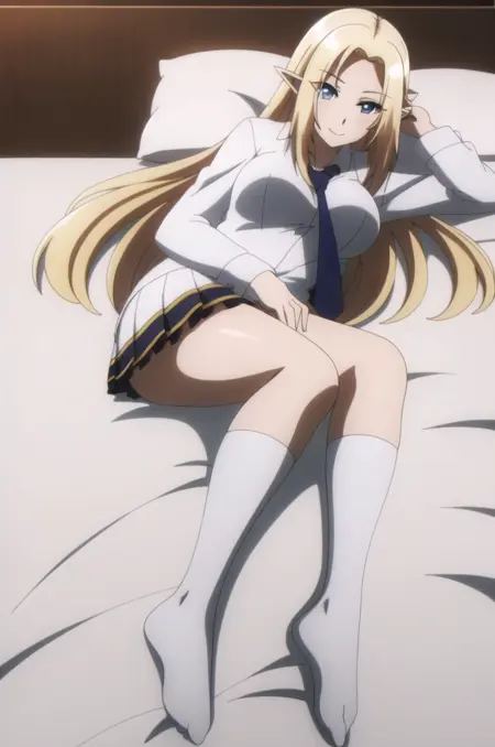 outfit_2,校服,白色衬衫,有领衬衫,蓝色领带,百褶裙,白色裙子:1,白色袜子,过膝袜,