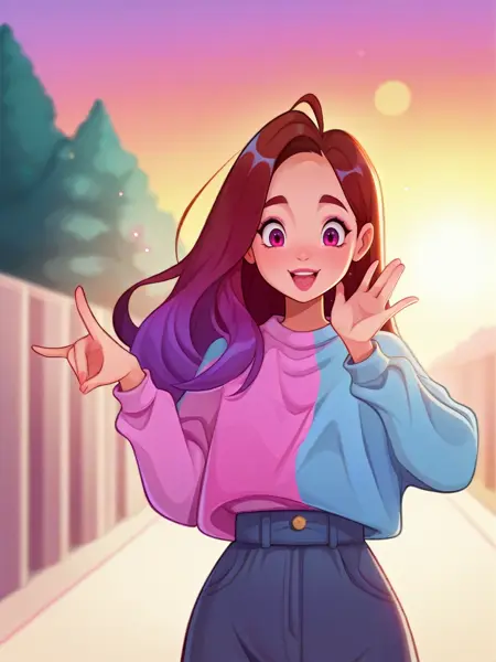 スタイルの焦点: カートゥーン、アニメスタイルで、鮮やかな色と柔らかく夢のような雰囲気を特徴とします。