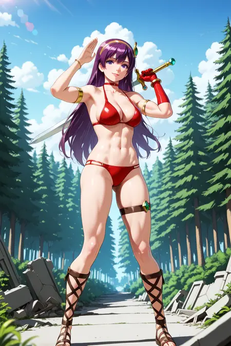 toned_abs, (jewelry, swimsuit, red_bikini, red_choker, collarbone,