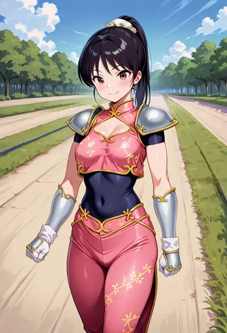 白い靴下、中国の靴、茶色の靴、鎧、手袋、全身、黒髪、筋肉質、ポニーテールは推奨バージョンであり、削除可能です