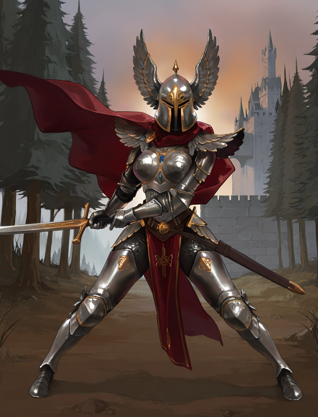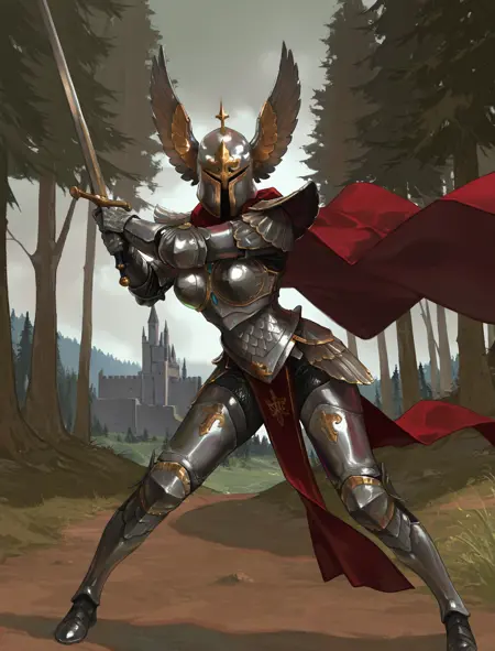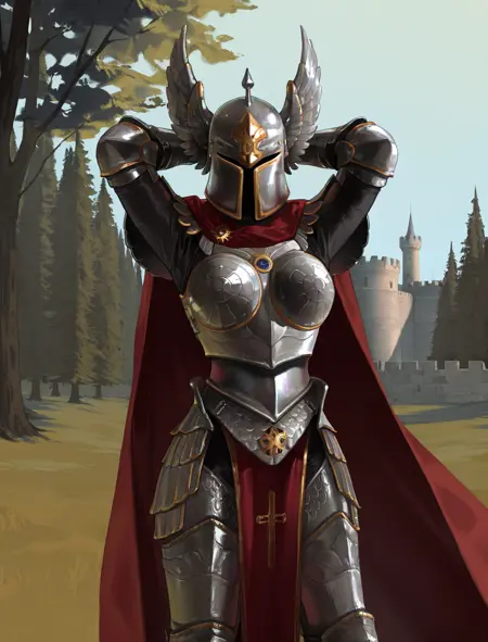 Use with 0.7 weight and with "full armor, winged helmet, winged pauldrons, gauntlets, breastplate, faceless" tags