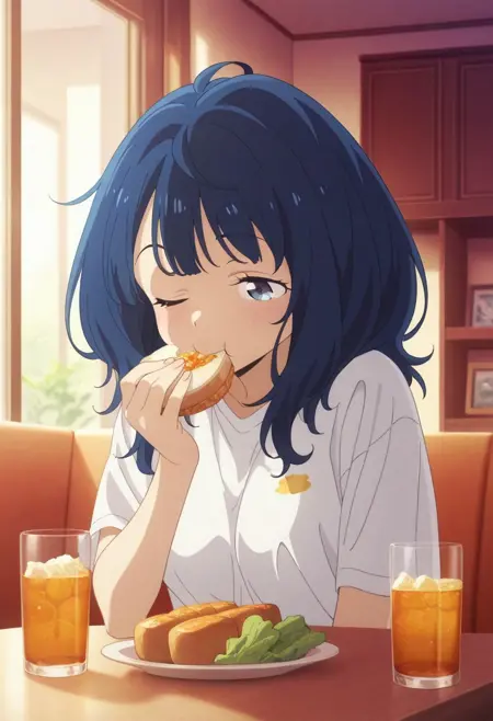 트리거 단어: yanami anna, 파란 머리카락, 파란 눈, 중간 길이의 머리카락