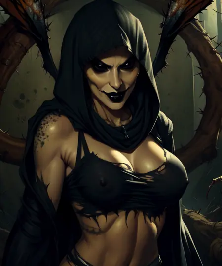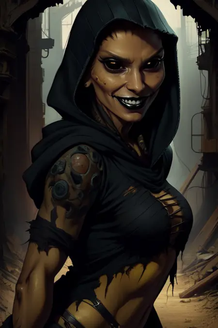 날카로운 이빨, 검은 혀, 또는 녹색 혀를 추가하면 ponyxl에서 더 쉽게 구현됩니다.