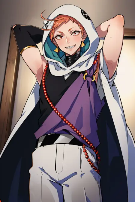 Default Outfit: kesa, hood, black gloves, jewelry, earrings