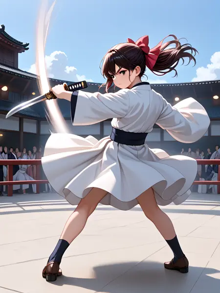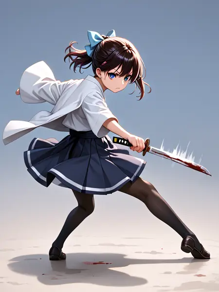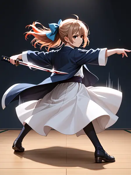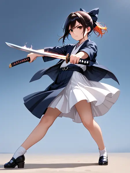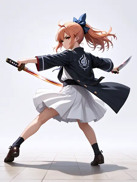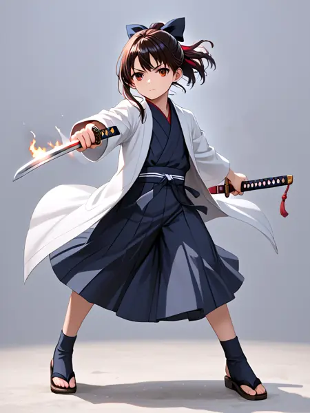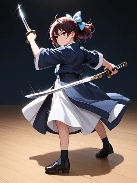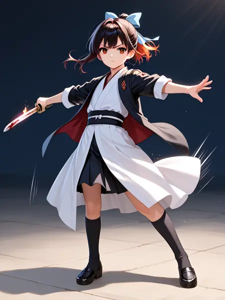 참고: 경험이 있는 사람은 칼, 도, 나이프를 학습하는 것이 얼마나 어려운지 알고 있습니다. 예를 들어, N개의 무기가 공중에서 임의로 날아다니는 상황이 발생합니다. 전문가들의 데이터를 참조하여, 저는 약간의 제어력 상실을 줄일 수 있었습니다. 성공률은 약 1/3~1/4입니다. 예를 들어, 추가 다리는 돌진과 긴 코트 때문에 발생합니다. 긴 칼을 선호한다면, "칼을 들고"를 "검을 들고"로 바꿀 수 있지만, 더 불안정해질 수 있습니다. 학습이 그리 쉽지 않기 때문에, 더 이상 시도할 계획이 없습니다. 이 LoRA는 주로 니토류 자세에 초점을 맞추며, 신오모리 아오시, 레비 애커만, 로로노아 조로에게 영감을 받았습니다(확신하지 못하지만, 산토류는 아닙니다).
