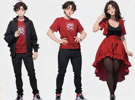 旨在生成一个男性角色逐渐转变为女性角色的多部分序列。建议使用简单背景和最高分辨率,推荐尽可能提高分辨率。可以使用多个提示词,如 裤子、红发 等来描述角色,更偏男性化的提示词应用于男性角色,反之亦然。