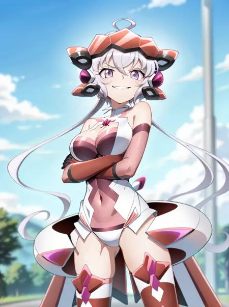 Main Prompts: yukinechris 1girl, solo, purple eyes, long hair, twintails, ahoge