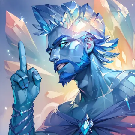 如果你想生成水晶胡须,请直接使用“crystal beard”作为标签,不要用“facial hair”,因为“facial hair”会产生真实的毛发,预览中已有示例:D