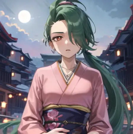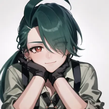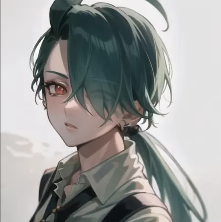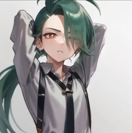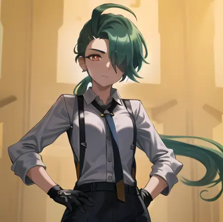 如果你想让她穿上传统服装,请在提示词中加入 LoRA 时一并写入:collared shirt, pants, suspenders, necktie, earrings