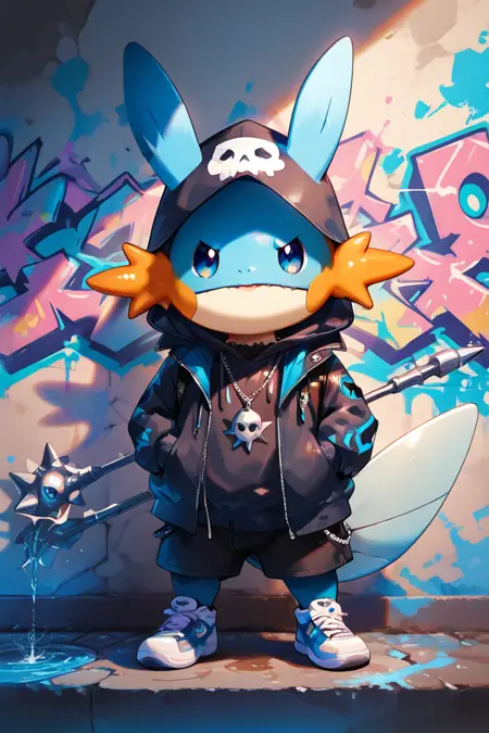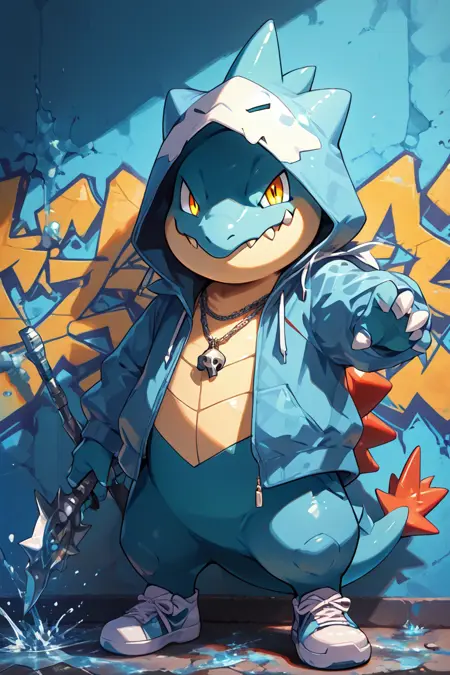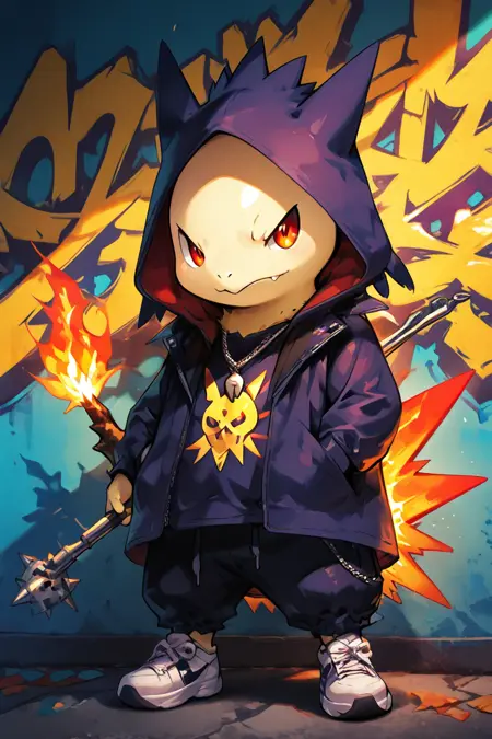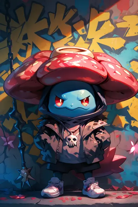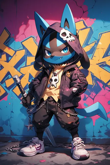 环境/细节: 涂鸦、角色图案、彩色眼白、拉链。