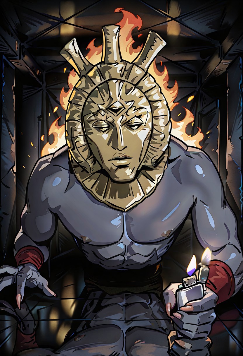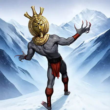 标签: DagothUr_TES3,灰色皮肤,有色皮肤,金色面具,面具,第三只眼,颈环,金色颈环,裸上身男性,肌肉发达,腹肌,腰带,腰布,护臂,长手指,长指甲,尖锐指甲,脚踝缠绕,赤脚,