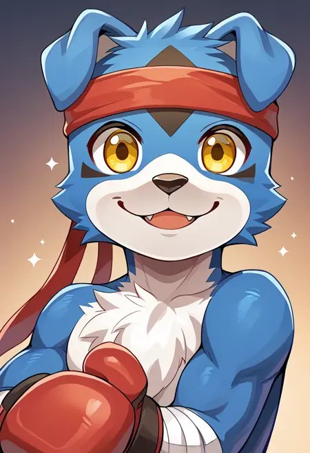 Pony: high res, best quality, gaomon_digimon, furry, headband, solo, 1boy, claws, yellow eyes, ...your tags...