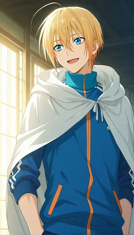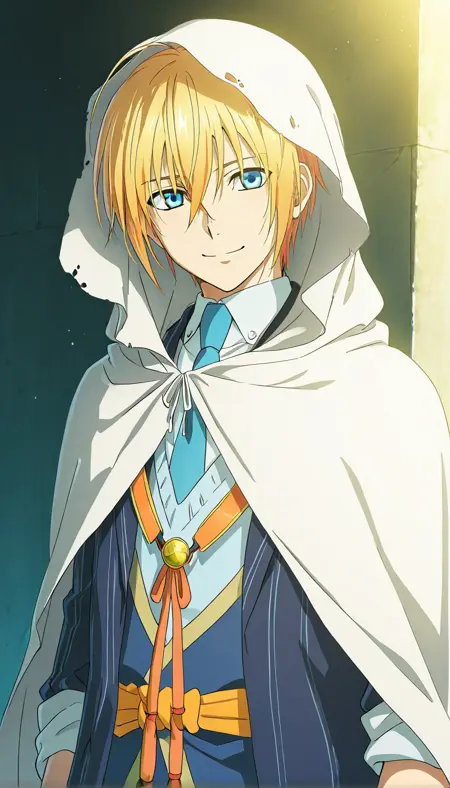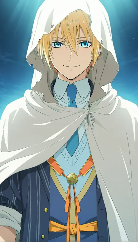 트리거 단어: yamanbagiri kunihiro, 금발, 파란 눈, 후드 달린 망토