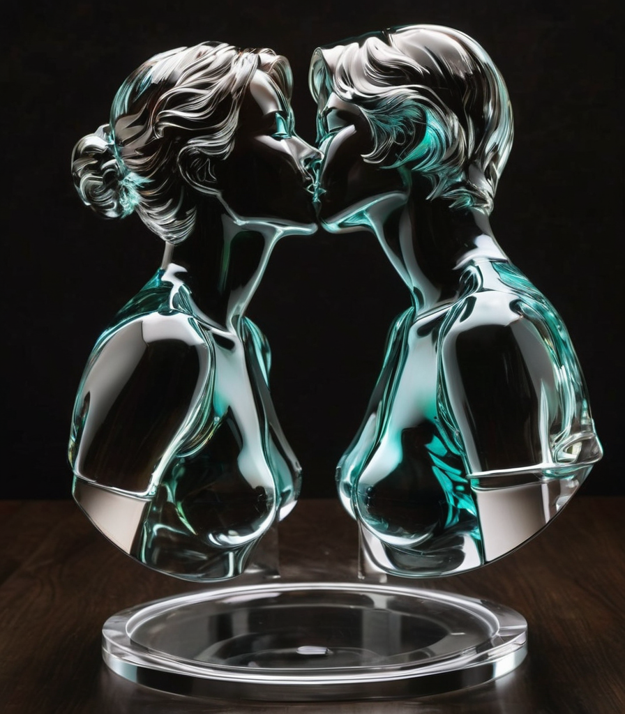 a glasssculpture of [], transparent, translucent, reflections, [style, etc]