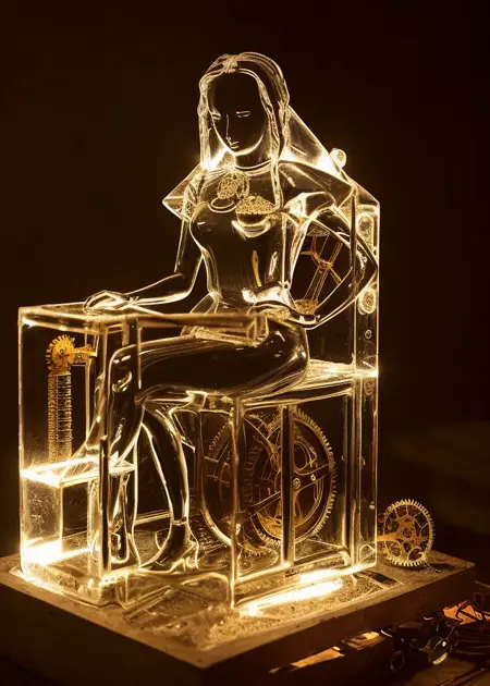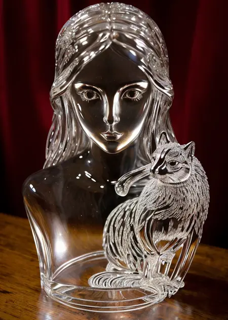 一个玻璃雕塑的 [],透明,半透明,反射,[风格等]