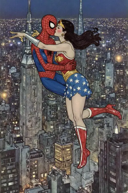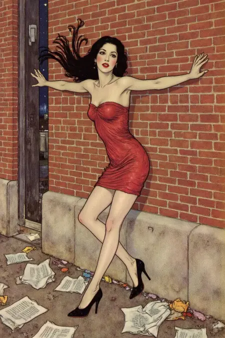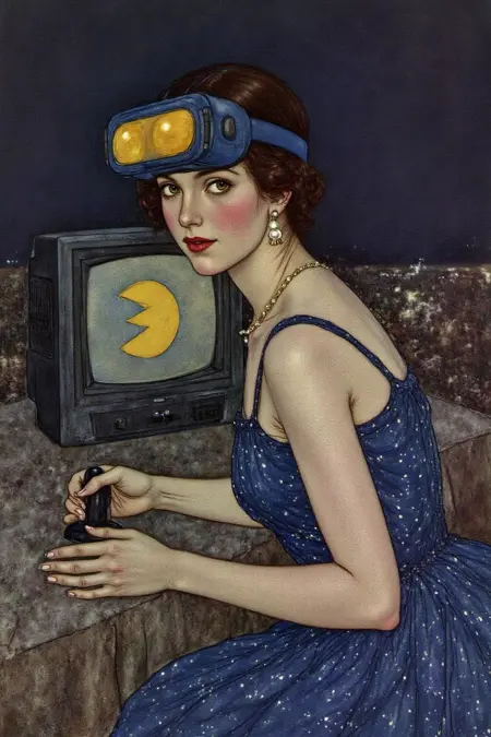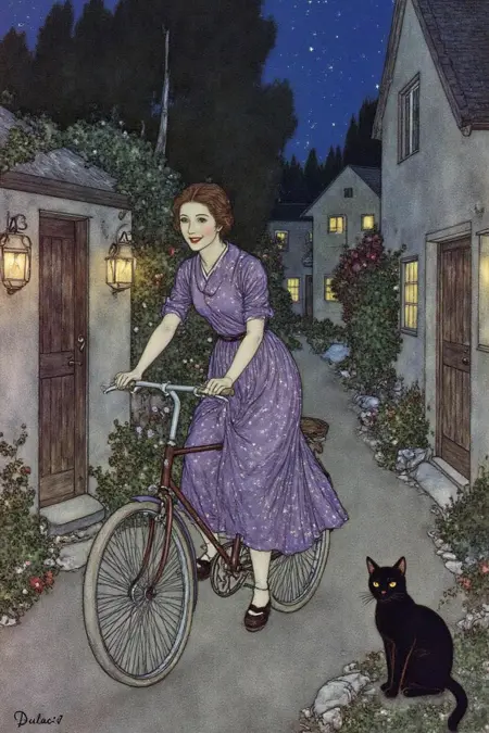 Rackhamとは異なり、Dulacはより広範なスタイルを用いており、シンプルでほとんどミニマリスト的なものからアール・ヌーヴォーに至るまで多様です(これが、このLoRAがRackhamのものよりも彼のスタイルに忠実でない理由の一つでもあります)。Dulacはほぼ水彩とガッシュだけで描き、人物にペンで輪郭を引くことはほとんどありませんでした。そのため、彼の絵画はRackhamの明確に描かれたスタイルよりも、より柔らかく、より空想的な印象を与えています。このLoRAは、Rackhamの挿絵に似た特徴を持つ、彼のより「古典的」な初期作品に基づいて学習されています。