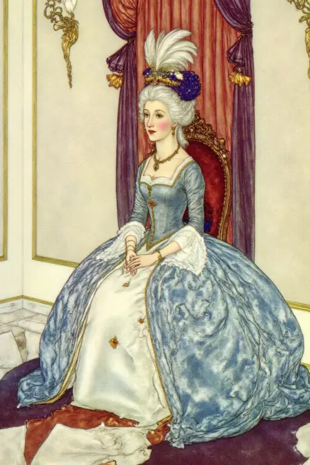 Edmund Dulacによる15点の水彩画を用いて学習されました。彼は英国挿絵の黄金時代を代表する另一位の巨匠であり、Arthur Rackhamに匹敵する存在です。Dulacの挿絵をご覧になりたい方は、https://artpassions.net/dulac/dulac.html へお進みください。
