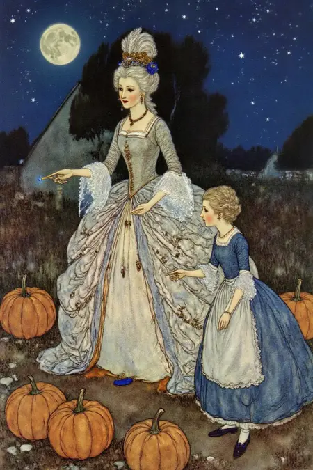 Edmund Dulac의 수채화 15점과, 영국 일러스트레이션 황금기의 또 다른 거장 일러스트레이터이며, 아서 래크헴의 값진 경쟁자로 알려진 예술가의 작품을 바탕으로 학습되었습니다. Dulac의 일러스트레이션을 보려면 https://artpassions.net/dulac/dulac.html을 방문하세요.