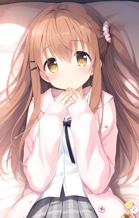 Sena,黄眼睛,棕发,发饰,发夹,一侧束起,刘海,头发遮住眼睛,发圈,发圈