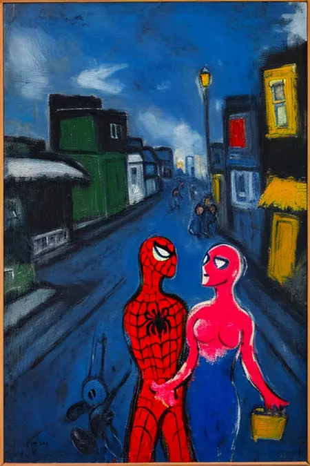 나는 아직 이에 대해 스스로 실험 중이다. 그의 작품이 매우 추상적이고 2차원이기 때문에, 표현력을 높이기 위해 간단한 프롬프트가 가장 효과적이다: "여자와 꽃"보다는 "숲 속에서 담요 위에 앉아 있는 꽃을 든 여자" 같은 복잡한 설명보다.