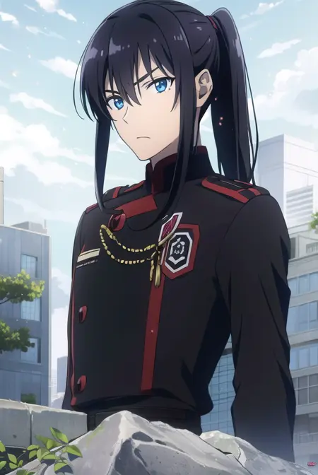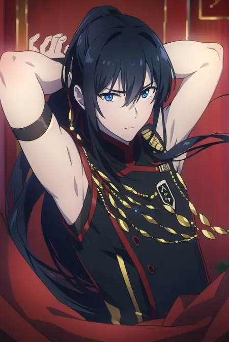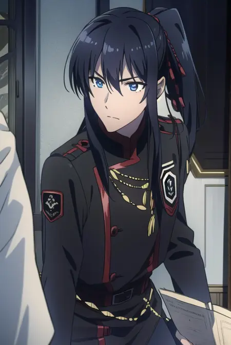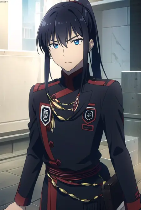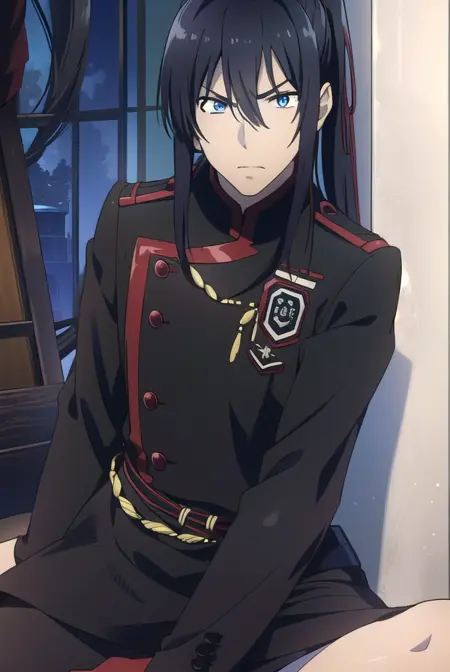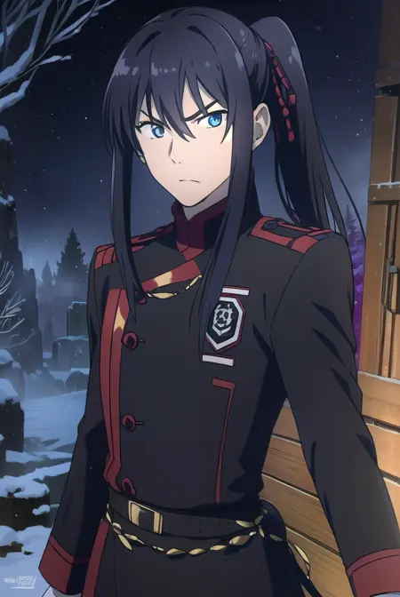 yuu kanda, long hair, black hair, ponytail, blue eyes,