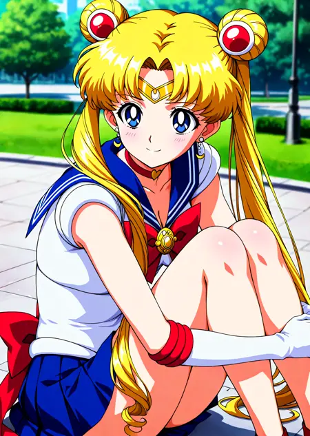 트리거 단어: tsukino usagi,1girl,solo,solo focus,blonde hair,blue eyes,double bun,hair bun,long hair,twintails,parted bangs,hair ornament,circlet,back bow,blue sailor collar,blue skirt,bow,brooch,choker,elbow gloves,gloves,jewelry,leotard,magical girl,pleated skirt,red bow,red choker,ribbon,sailor collar,sailor senshi uniform,skirt,white gloves,