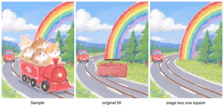 詳細なテクスチャ向上のため、追加のインペイントトレーニングと統合。