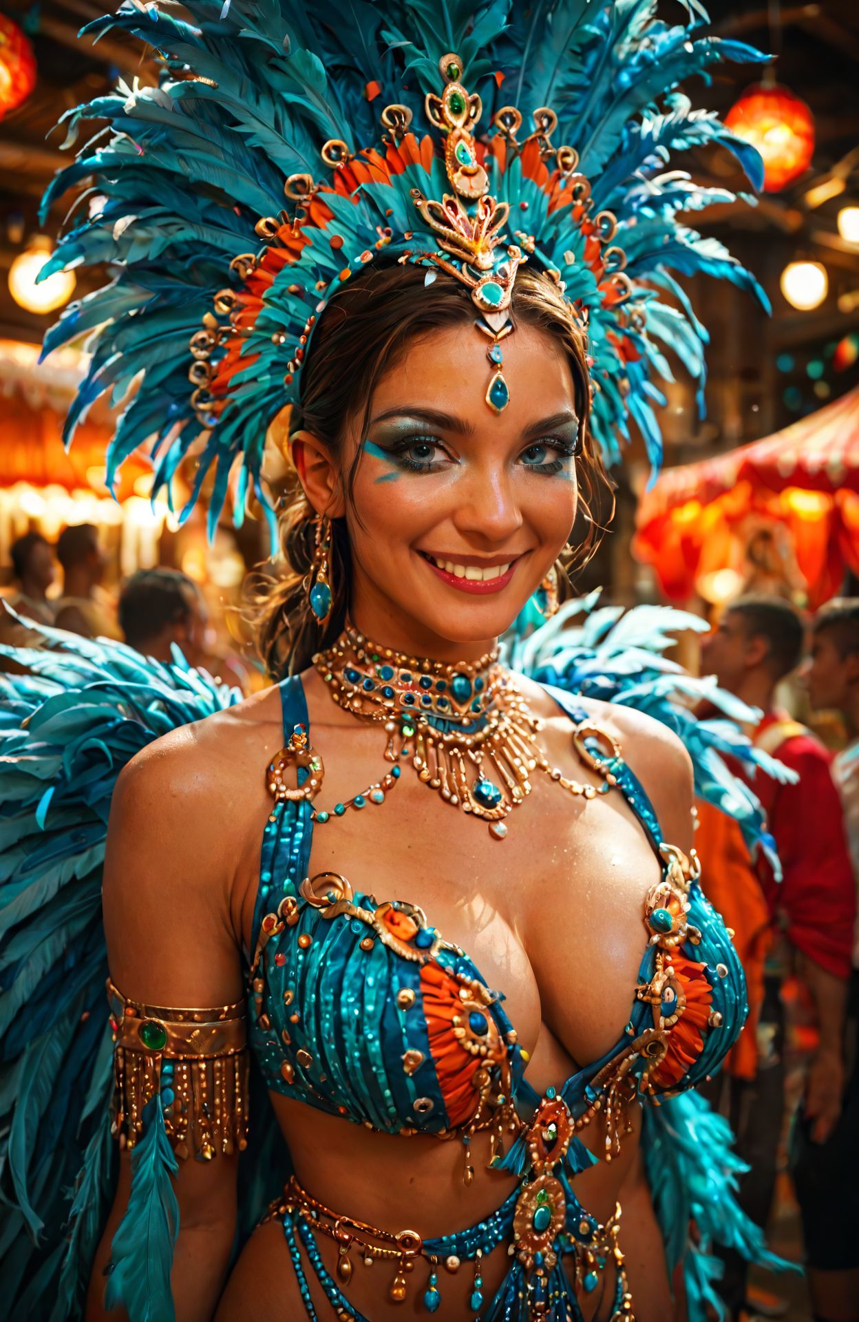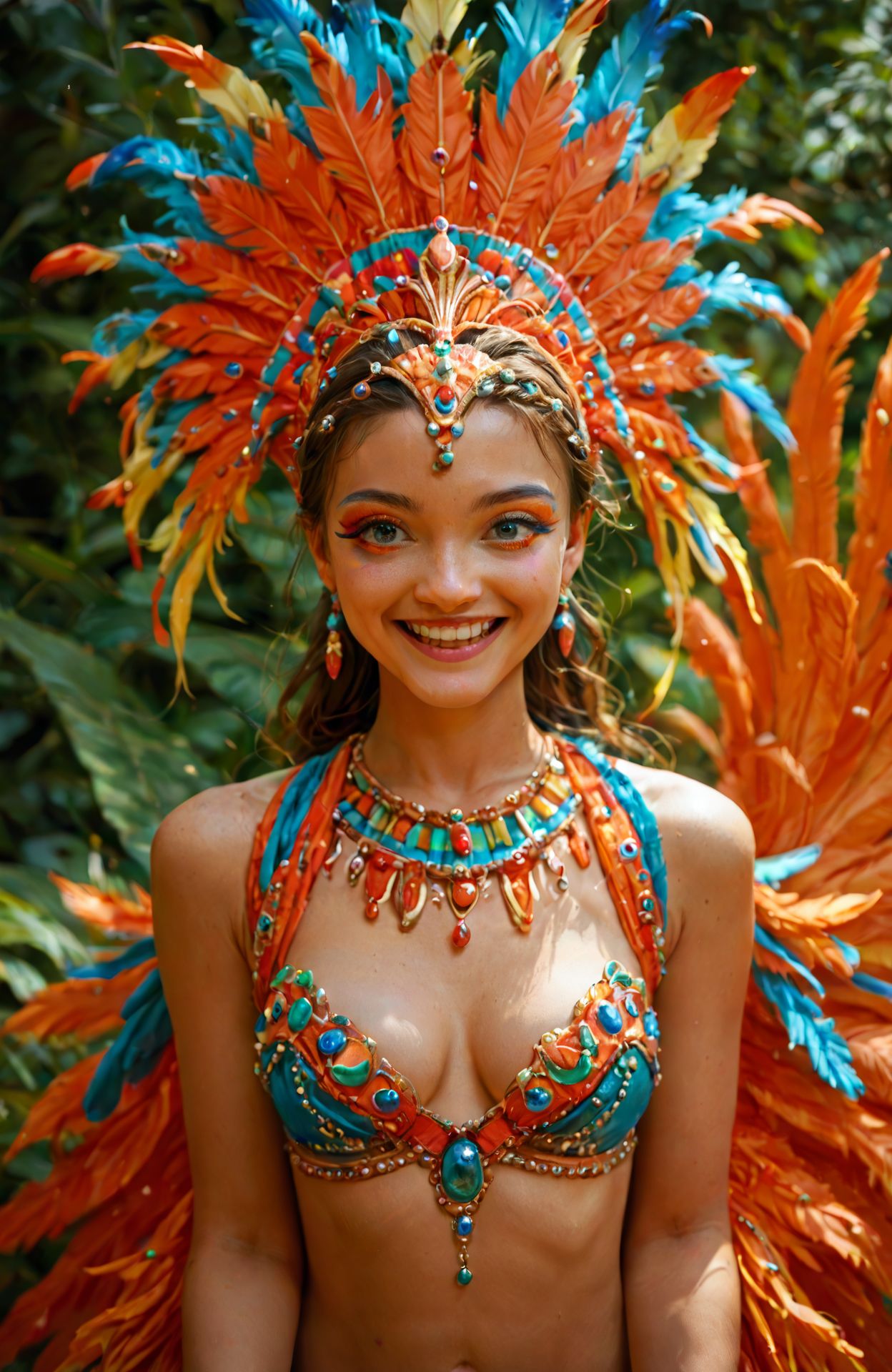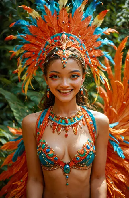 基本プロンプト: 1girl, カーニバル衣装, フェザー, ジュエリー, 髪飾り