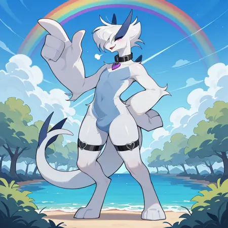 Bloom是一个同性恋女性化Lugia原创角色,具有风格化的比例(针对Lugia而言)。他的大部分艺术作品表现了傲慢、体型差异和整体的 playful 氛围。
