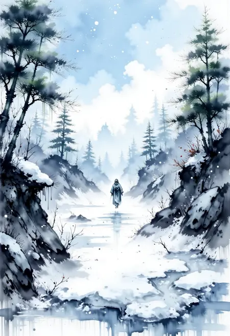 • 분위기 있는 장면: 균형 잡힌 잉크-수채화 구성으로 고요한 자연 풍경이나 극적인 서사 순간을 생성하세요.