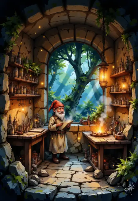 “梦境童话”之所以脱颖而出,在于它既能唤起惊奇与魔幻之感,又能保持艺术上的精准。此LoRA不仅生成美丽的图像,更构建出讲述故事的场景。每一个细节——从萤火虫的微光到青苔覆盖的石头纹理——都经过精心设计,以营造沉浸式体验。与其他奇幻风格不同,此LoRA在现代化数字创作中,保留了经典儿童绘本插画的怀旧魅力。