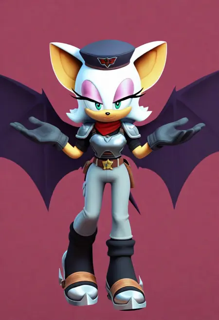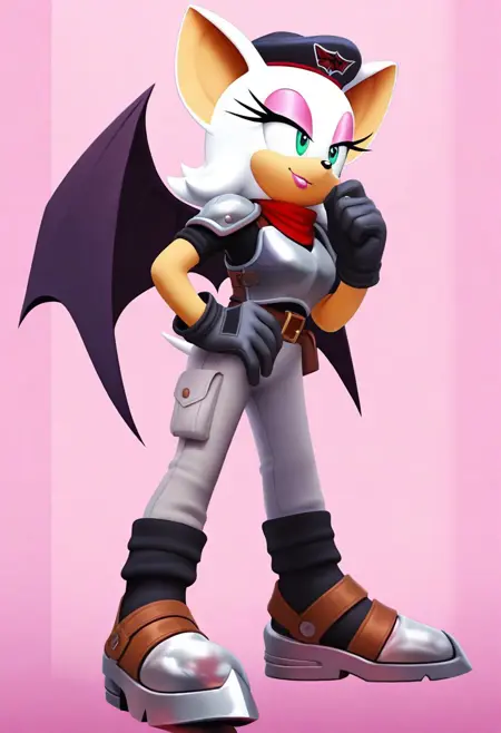 | トレーニングワード | white hair, curvy, bat ears, bat girl, bat tail, bat wings, furry female, light pink eyeshadow, pink lipstick, hat, black shirt, metal chestplate, shoulder pads, gray pants, brown belt, red scarf, black gloves and socks, metallic sandelsコピーしました! |