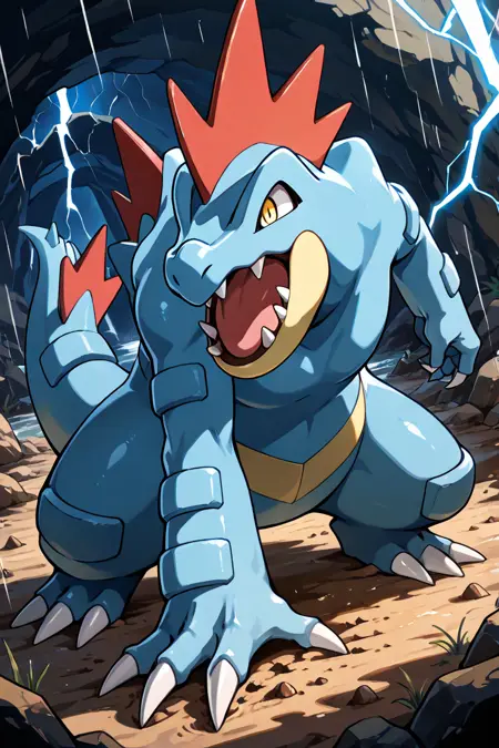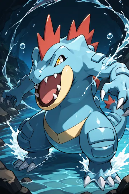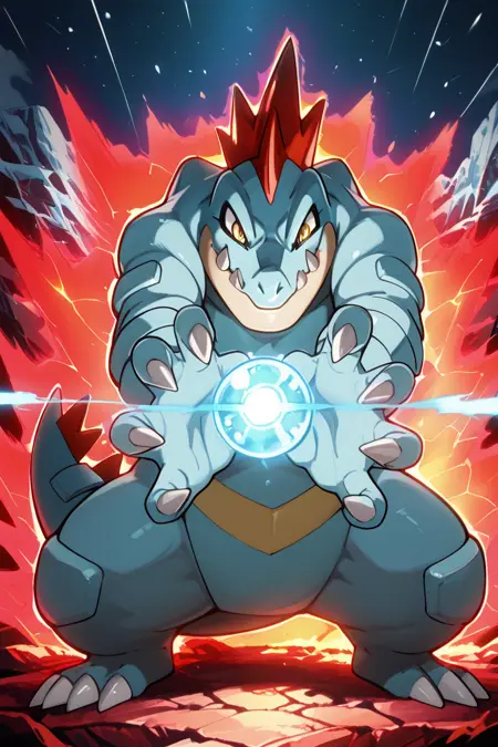 Feraligatr: Big Jaw Pokémon | オーダイル (Pokedex #0160) [Illustrious]