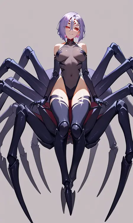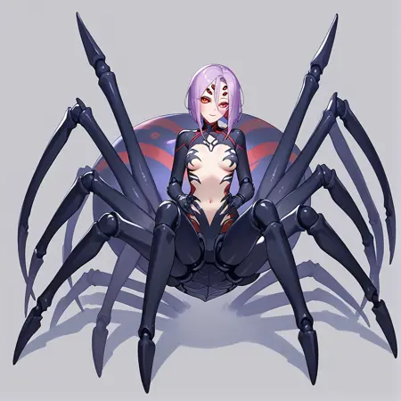 如果你想看到一个更像人类的女孩,蜘蛛状身体部分不那么突出,则使用提示词:“怪物女孩,节肢动物女孩,蜘蛛,额外手臂”;如果你想获得一个蜘蛛状身体部分更突出的图片,则使用这些提示词:“蜘蛛腿,怪物女孩,蜘蛛身体,蜘蛛女孩”