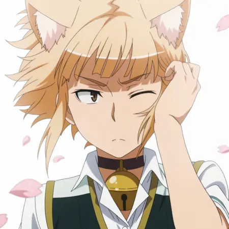 Tanpopo, blonde hair, short hair, cat ears, brown eyes,