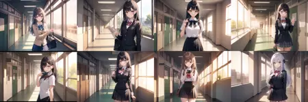 LoRA 训练用于生成室内学校走廊。我发现一些基础模型似乎能生成走廊,但无法专门生成学校走廊。此模型解决了这一问题。