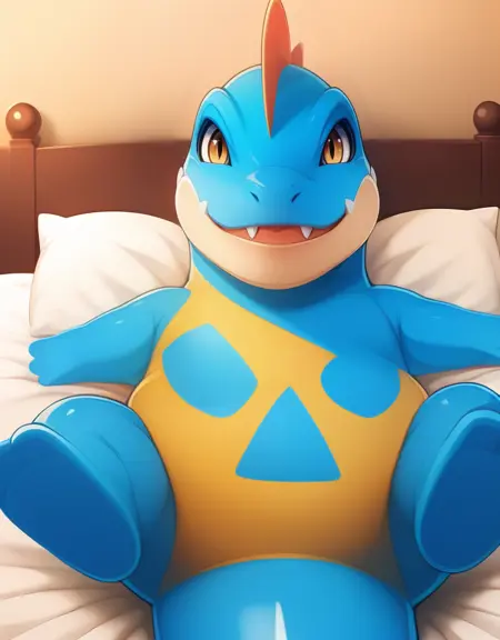 相关词:蓝色皮肤,黄色眼睛,橙色眼睛,棕色眼睛,明亮瞳孔,白色瞳孔,竖瞳,尖牙,獠牙,牙齿外露,爪子,恐龙,蜥蜴,龙男孩,尾巴,无人类,怪物男孩,宝可梦(生物),生物,鳍,刺