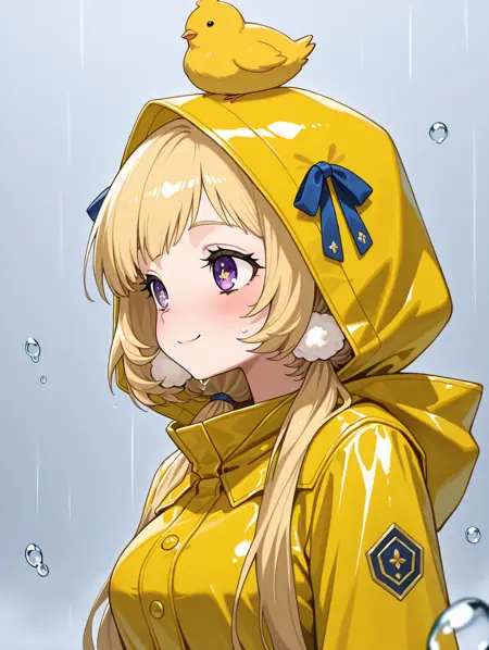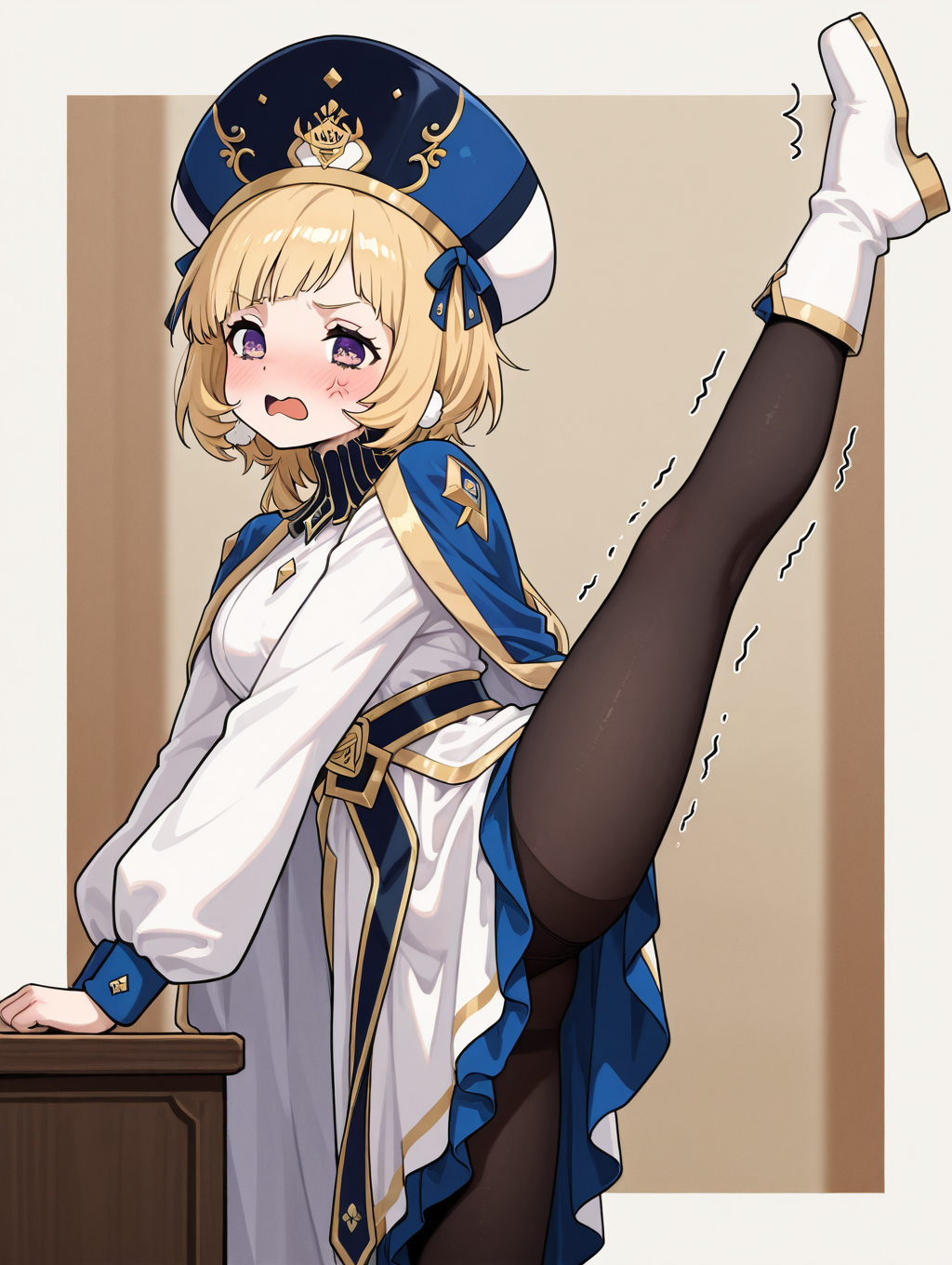 veronica, 1girl, solo, 長い髪, ブロンドの髪, 長袖, 帽子, ボウタイ, 中程度の胸, 紫の目, 髪のボウタイ, パフスリーブ