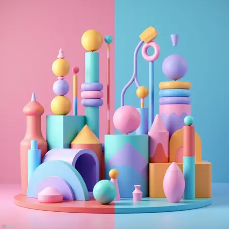 A contemporary 3D render take on the Memphis design style. Good for abstract 3D renders with soft edges and other almost claymation style scenes.
