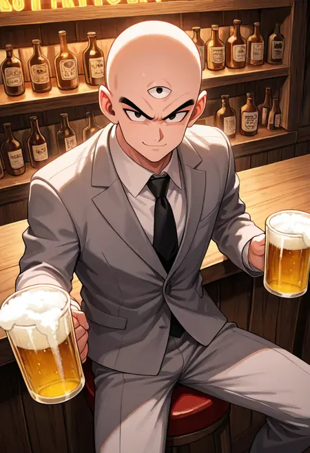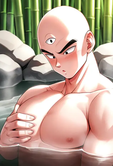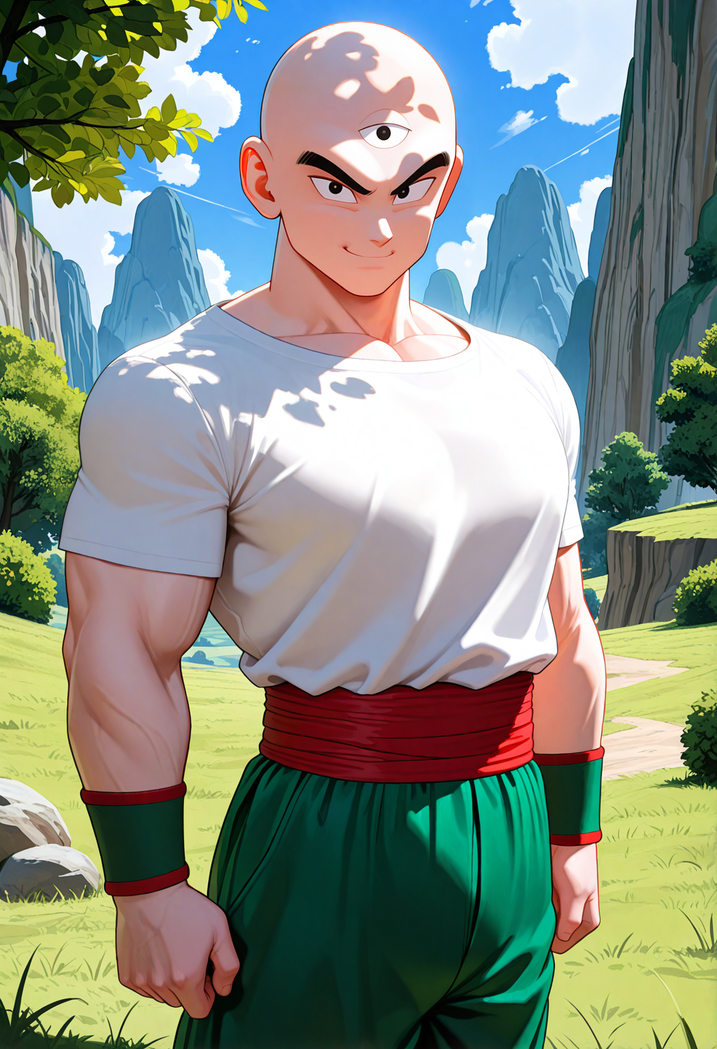 tien, third eye, bald, black eyes, muscular male