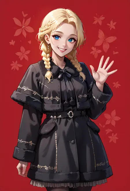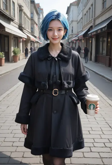 If the black coat doesn't want to get properly, because of bright scenery, you can force it by also putting "black coat" in the prompt, like such: