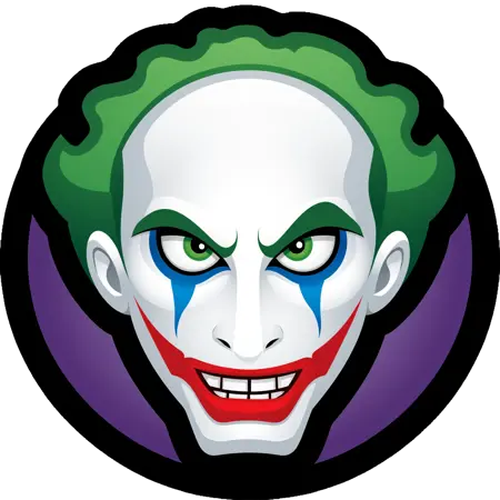 "iconx, 현대적인 스타일의 단순한 반사가 있는 분노한 조커 원형 아이콘"