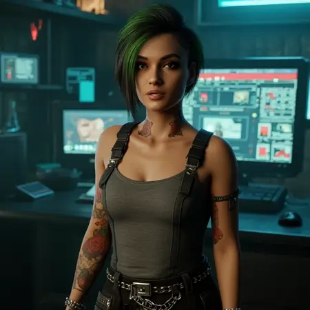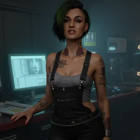 は熟練したブレインダンス技術者で、Moxのメンバーです。彼女はカブキ東北部のウォトソンに自宅を持っています。ジュディは『サイバーパンク2077』におけるVの恋愛対象の一人です。