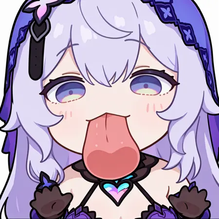 트리거 단어: blush_sticker, licking screen, looking at viewer, simple background, tongue, tongue out, chibi, :3