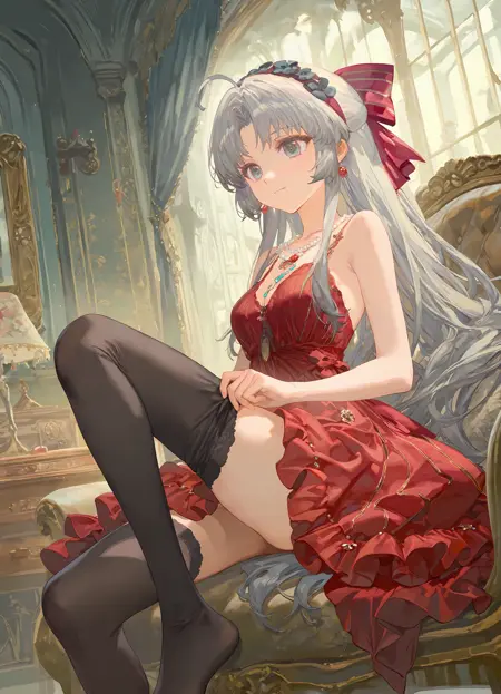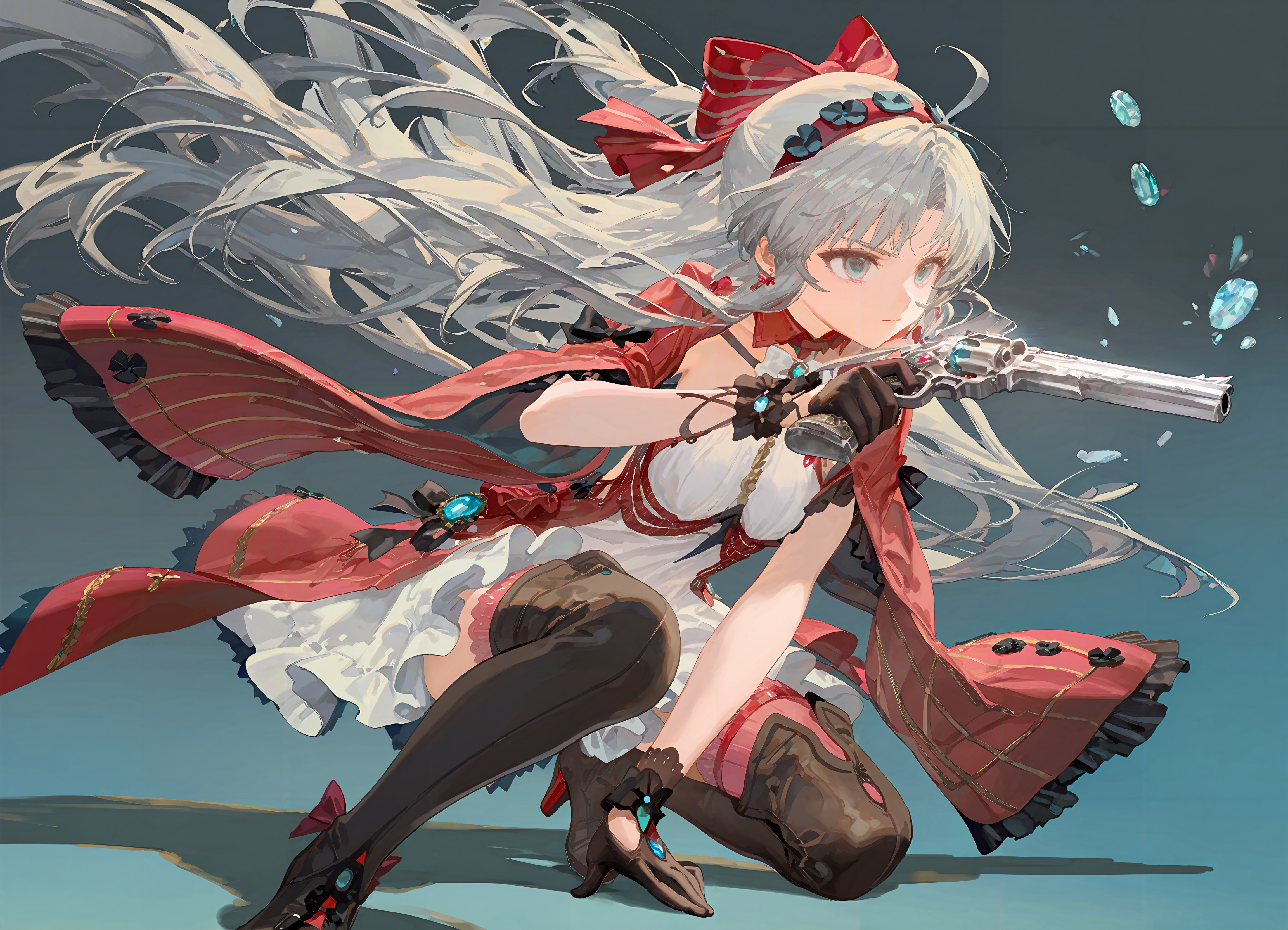 カロッタ: carlotta, pink hair bow, black gloves, pink thighhighs, thigh boots