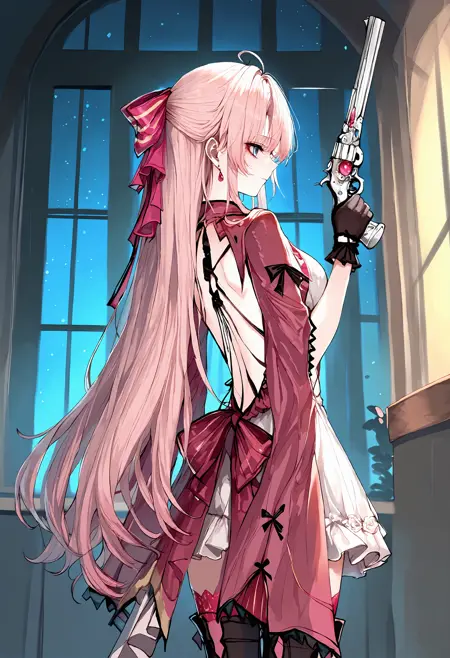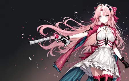 카롤라: carlotta, 분홍색 헤어보, 검은 장갑, 분홍색 허벅지 스타킹, 허벅지 부츠