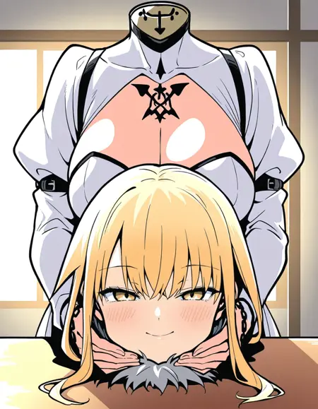 Miitobanによる同人作品『Neckless』のDullahan女性。このLORAは正しく使いこなすのが非常に難しいです。なぜなら、女性の頭は体につながっているべきだというベースモデルの組み込み情報と戦わなければならないからです。