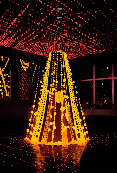此LoRA使用了概念艺术家草间弥生的装置和雕塑作品进行训练,她的作品以波点图案、明亮色彩和曲线造型为特色——尤其是她标志性的风格化南瓜。